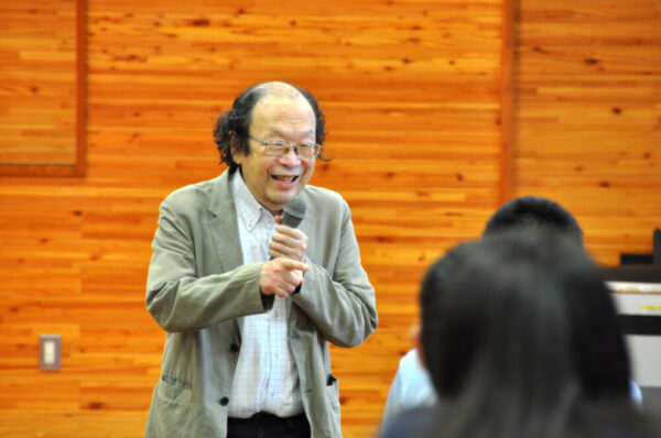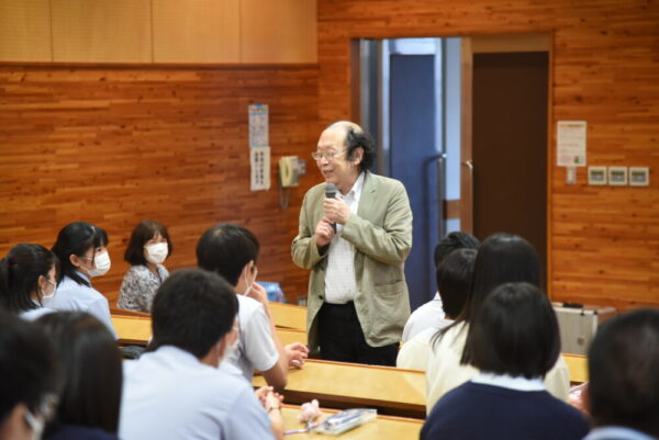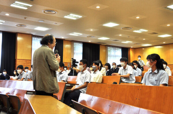 県立図書館館長であり、国語学者である金田一先生が出張トークに来てくださいました。