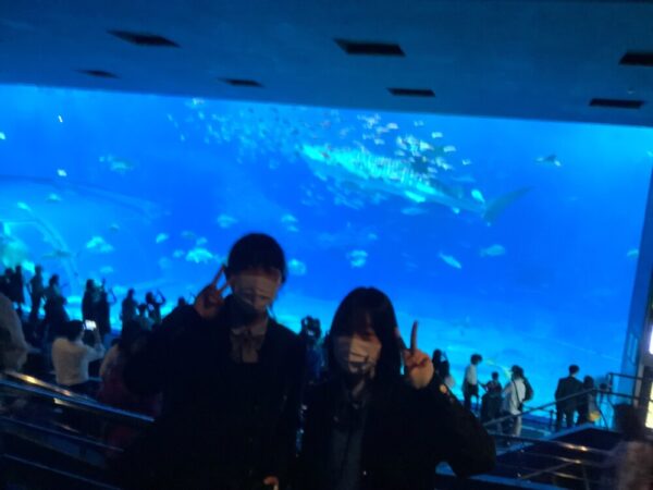 山梨県立北杜高等学校 > 学校行事 > 修学旅行 > 修学旅行 2日目 沖縄美ら海水族館 2022年11月15日カテゴリー: 修学旅行 学校から 学校行事 修学旅行 2日目 沖縄美ら海水族館 本日の最後の見学場所「沖縄美ら海水族館」に到着しました。 憧れのジンベイザメにご対面です。 オキちゃんショー