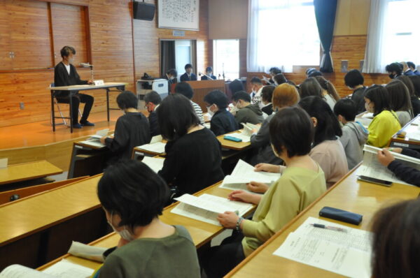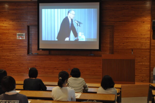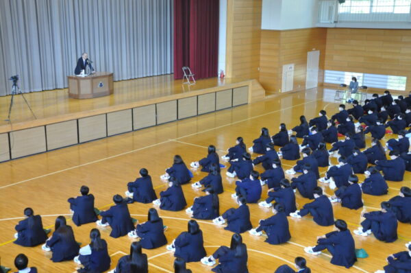 生徒は体育館で直接、保護者のみなさまにはオンラインで講演会をお聞きいただきました。