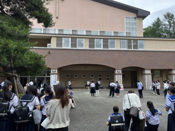 当日は天候が不安視されましたが、ライブの時は晴れ間も見え、多くの中学生や保護者の方に見て頂くことができました。