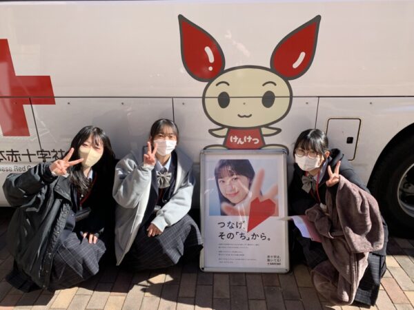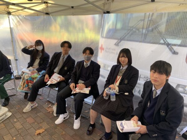 11月14日(火)に献血バスに来ていただき、3年生の希望者と教職員約90名が献血へ協力をしました。