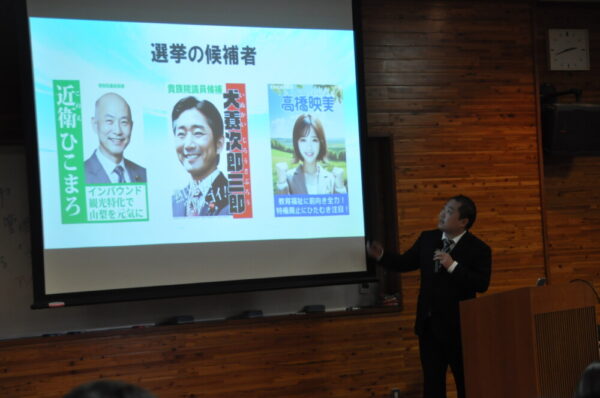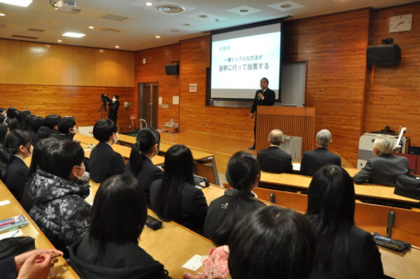 総合的な探究の時間内で、この春卒業予定の3年生に向けて主権者教育を実施しました。
