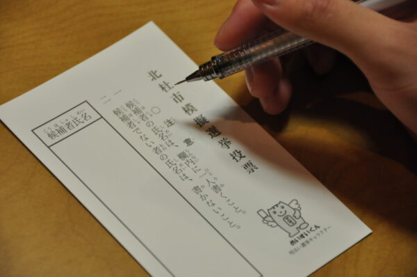 選挙のしくみ、意義について講義していただいた後に、実際の投票用紙