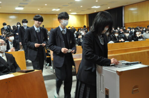 生徒にはすでに実際の選挙で投票を経験している生徒もいますが、