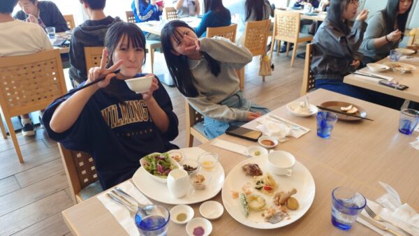 山梨県立北杜高等学校 > 学校行事 > 修学旅行 > 修学旅行 2日目 クラス別行動<昼食>(追加あり) 2025年12月10日カテゴリー: 修学旅行 学校行事 修学旅行 2日目 クラス別行動<昼食>(追加あり) クラス別行動の昼食の様子です。 予定どおり各クラス全員無事に午前の日程を終え、昼食をとっています。 昼食後、各クラスの計画どおり見学を続けます。 ヒルトンホテル バイキング 昼食 ウミカジテラス、美ら海水族館