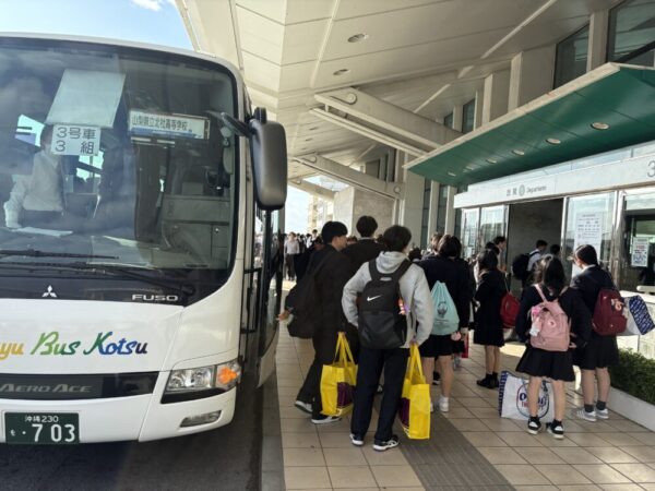 【9:40】北杜高校修学旅行団は那覇空港へ到着いたしました。