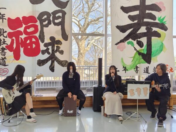 山梨県立北杜高等学校 > 部活動 > 軽音楽 > 軽音楽部 1月ロビーコンサート♫ 2026年1月21日カテゴリー: 部活動 軽音楽 軽音楽部 1月ロビーコンサート♫ 校内のセンターコリドールで、先月に続きロビーコンサートを行いました。 今回は月曜日からの3日間、計6組のユニットによる演奏です。 昼休みのひと時を多くの生徒の皆さんと共に楽しむことができました。 次回は春フェスです。3月14日(土)13時30分~、八ヶ岳やまびこホールでのライブとなります。 一般の方の入場も可能です。(入場無料) 多くの方々にお越しいただけることを楽しみに、これからの練習を頑張っていきます。 なお、翌日の15日(日)は本校吹奏楽部の演奏会が同じ会場で行われます。こちらもよろしくお願いします。♬