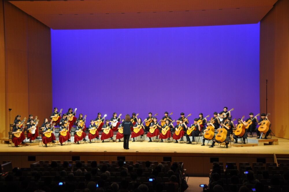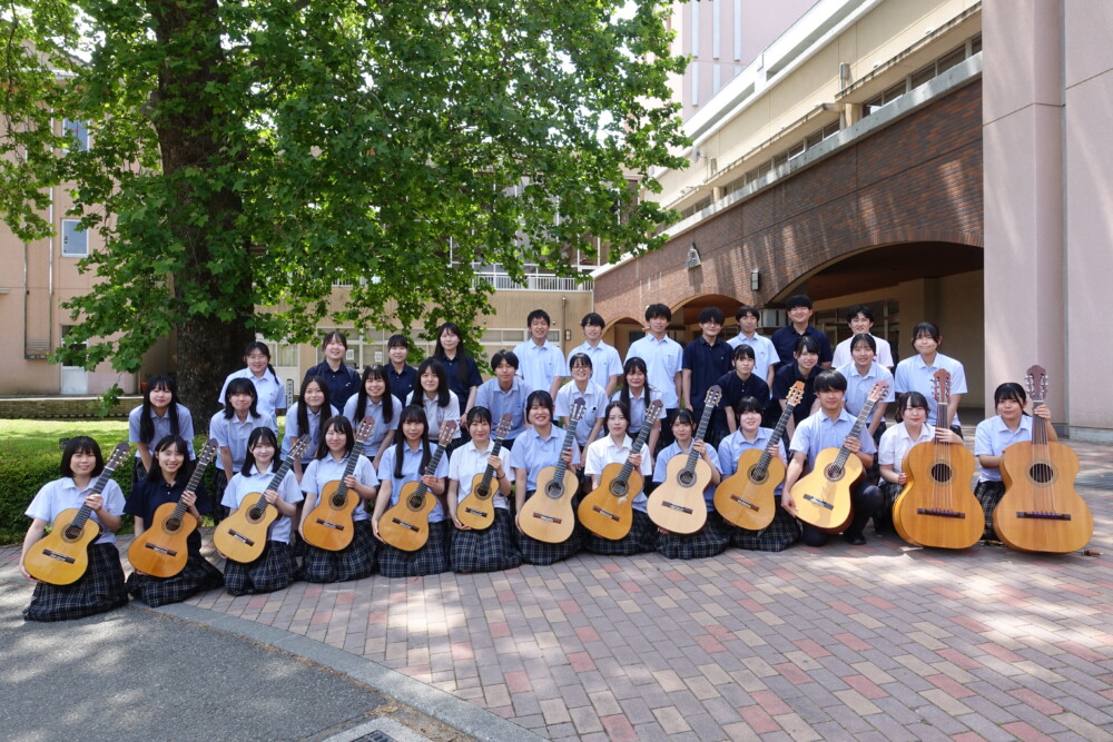 活動は大きく分けて、コンクール出場と校外演奏です。毎年全国学校ギター合奏コンクールに出場して、令和6年度を含めて16年連続で金賞を受賞しています。全国で1位となる最優秀賞を目指し日々練習を重ねています。